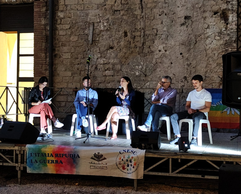 Il primo talk ha affrontato il tema delle resistenze, intrecciando memoria storica e attualità. Tra gli ospiti, l’On. Claudio Maderloni di ANPI Nazionale, Gennaro Giudetti – operatore umanitario appena rientrato da Gaza – e Simone Campora, portavoce del Comitato Giustizia per Mario Paciolla. Un confronto intenso che ha messo al centro la responsabilità individuale nella costruzione di pratiche di resistenza nonviolenta.