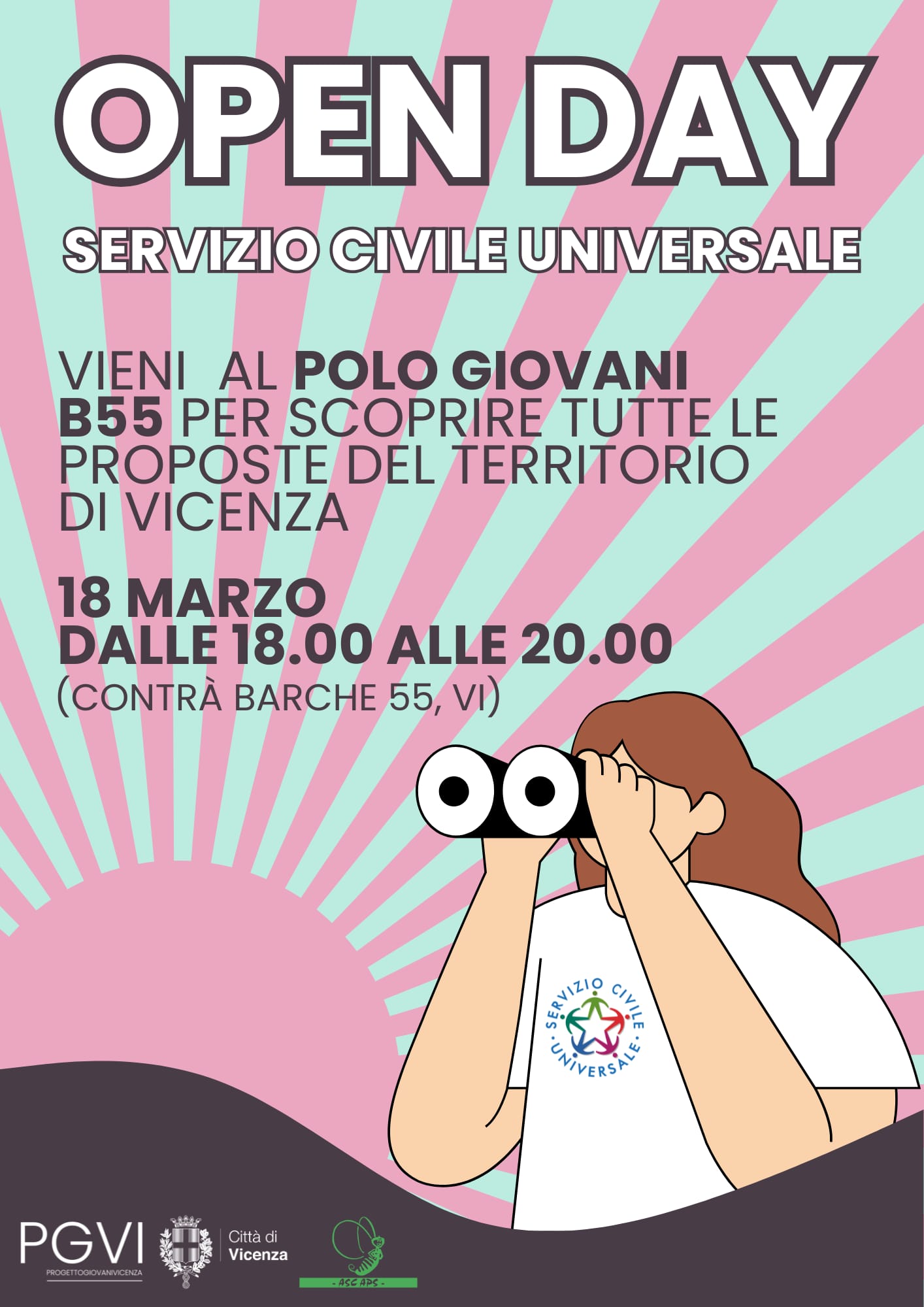 Ci saremo anche noi all’Open Day organizzato dall’Informagiovani di Vicenza e dal Comune di Vicenza per presentare tutte le opportunità sul territorio vicentino: mercoledì 18 marzo alle ore 18.00 in Contrà Barche, 55 – Vicenza, presso il POLO GIOVANI B55 del Comune di Vicenza.
